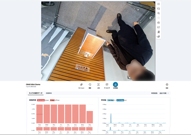 カメラで取得したデータをクラウドで管理することで、現場にいなくても利用状況を把握しやすくなります。顔の登録や入退出数の管理も可能です。